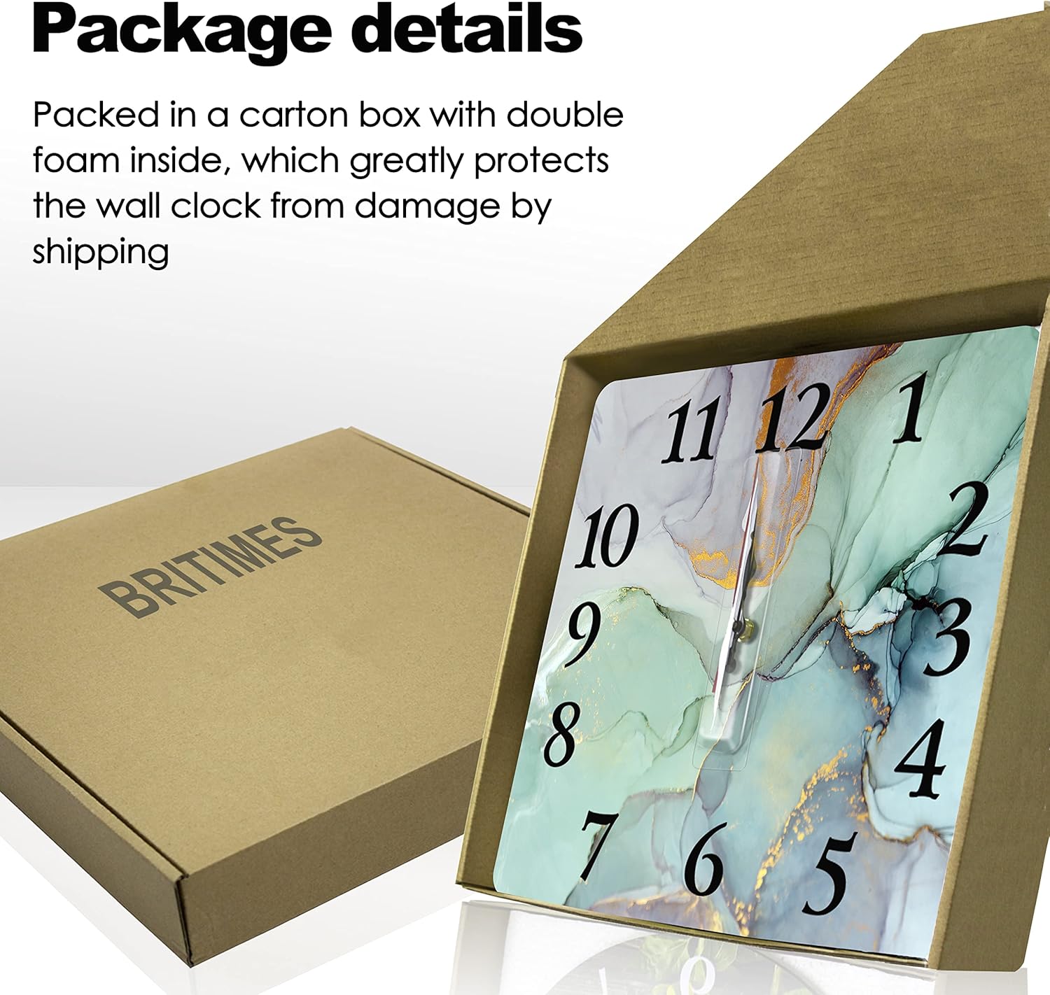 "Gm size: 25 x 25 x 0.5 cm / 30 x 30 x 30 x 0.5 cm / 0.5 cm / 0.5 cm x 0.5 cm / 30 x 30/30 x 30 x 0.5 cm / 0.5 cm / Wide viewing Angle, large number, no glass cover, no light reflection." "Eco-friendly materials: MDF, durable and vivid colors, clear reading, no glass cover, no border, practical and beautiful combination. Accurate quartz movement, accurate timing." "No ticking & Easy suspension: no ticking, scan motion (requires 1 AA battery, not included). Easy to hook to the wall (with hook, no bracket). Time accuracy and stability." "Versatile: stylish, suitable for living room, bedroom, kitchen, bathroom, classroom, guest room, office, dining room, cafe, library or any color wall." "Ideal gift: easy to read, suitable for children and the elderly. Are Christmas/Christmas gifts, Children's Day gifts, bridal gifts, anniversary gifts, Mother's Day gifts, Father's Day gifts, birthday gifts, holiday gifts, etc. Share this beautiful wall clock with your loved ones."