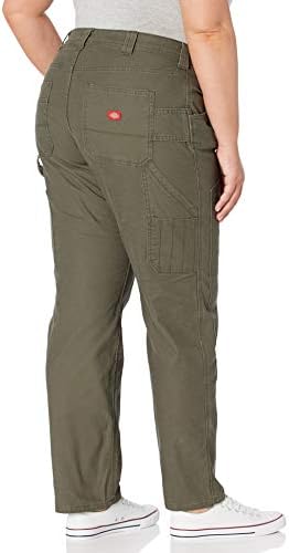 Women's Dickies with double front duck carpenter pants are worth the work. The duck material withstands the wear and tear of any job and the wavy belt has an elastic lining, so you don't have to worry about any gaps in your back. These pants are highly functional, with pockets and hammer rings.