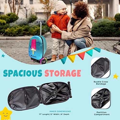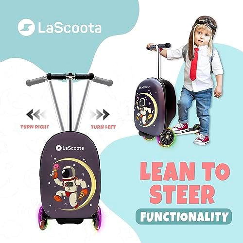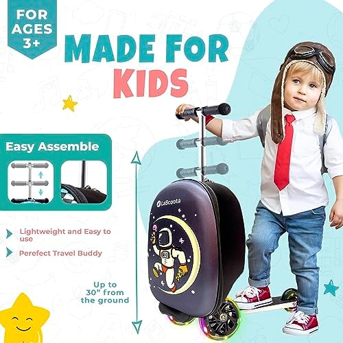 LaScoota Skateboarder Suitcase, Children's Foldable Scooter suitcase - Lightweight children ride luggage scooter with wheels,LED lights - Astronaut graphic suitcase Scooter, suitable for children 4-8 years old.