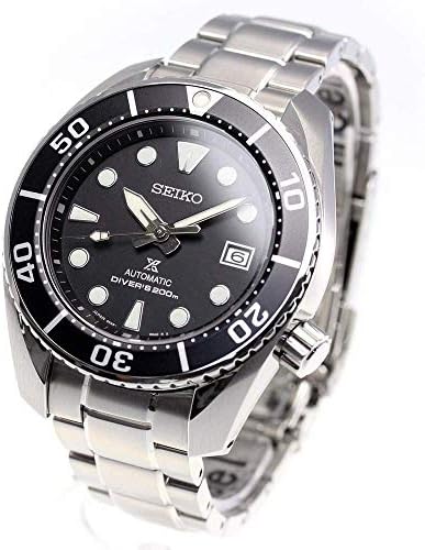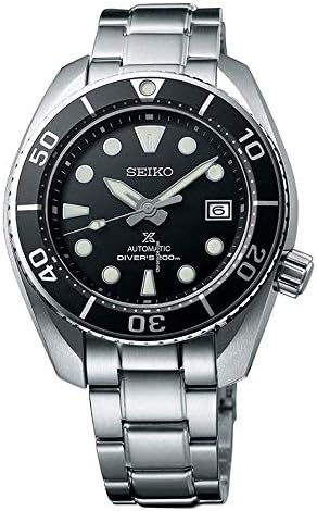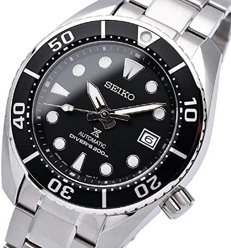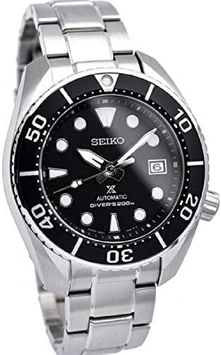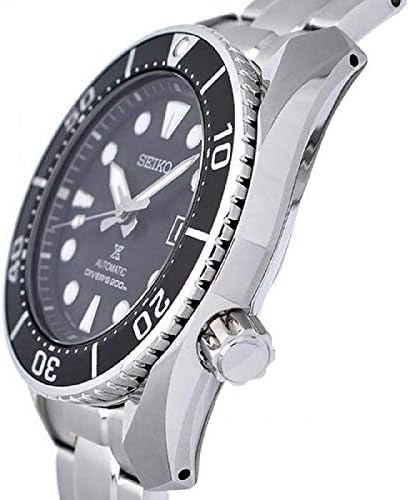 The black dial is enhanced by luminous silver hands. Silver stainless steel case, silver tone stainless steel strap. Automatic movement. 200 m /660 ft waterproof. One way rotation bezel. Scratch resistant sapphire crystal. Solid bottom cover. Use the * release buckle to fold. Screw-in crown. Case size 45 mm x 12.9 mm. Strap 22mm x long SEIKO SPB101J1 Prospex Watch